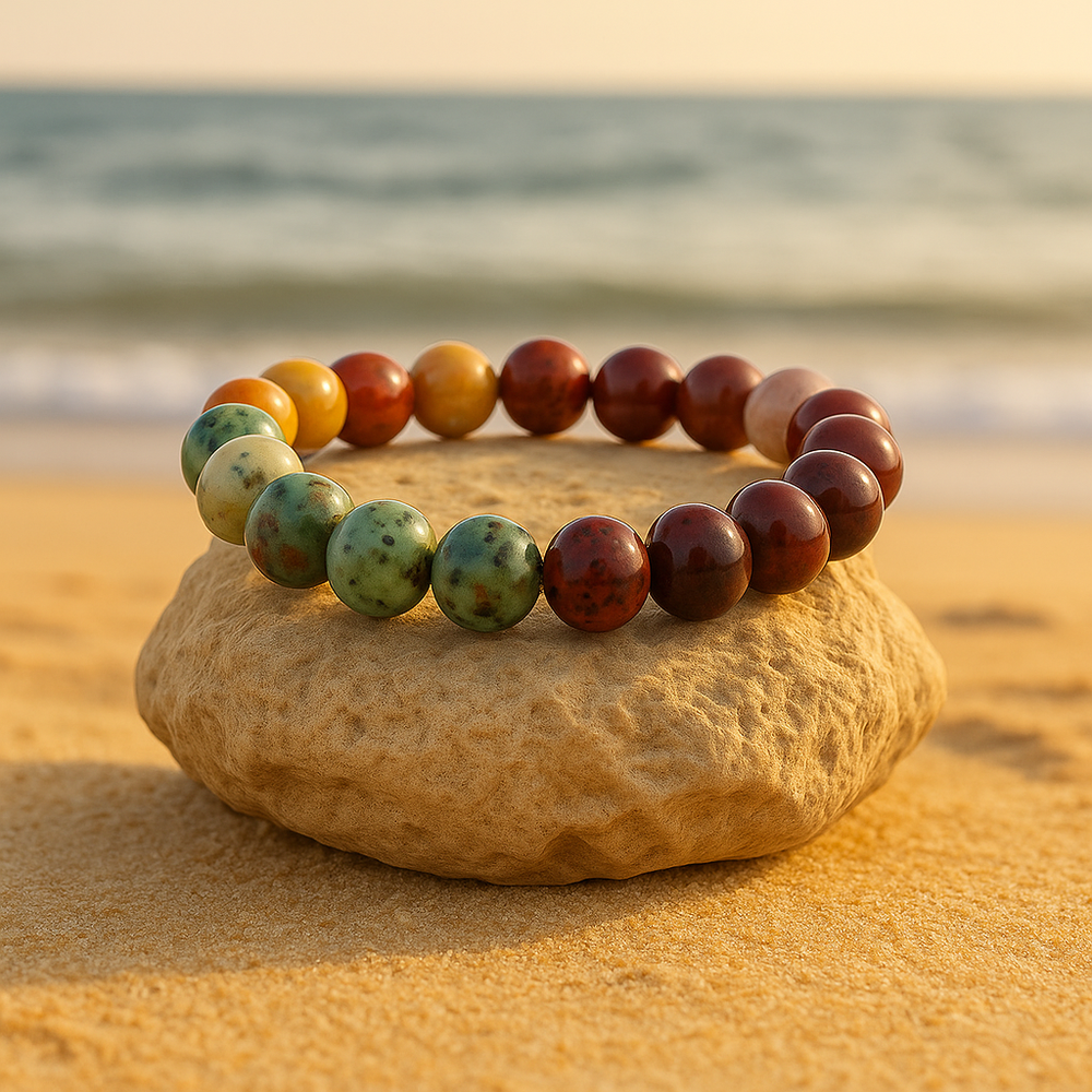 Nos créations racontent une histoire : celle de la Terre et de ses bienfaits naturels. À travers nos bijoux uniques en pierres naturelles et semi-précieuses, nous bâtissons un lien respectueux et équilibré entre la nature et l’humain.