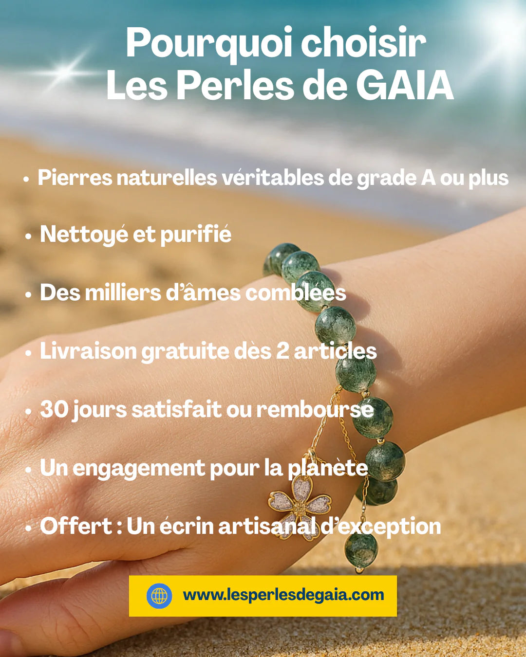 Chez Les Perles de Gaïa, nous honorons les trésors que la nature nous offre. Chaque commande contribue à la préservation et à la sauvegarde du vivant, car nous croyons qu’ensemble, nous pouvons créer un avenir plus harmonieux.