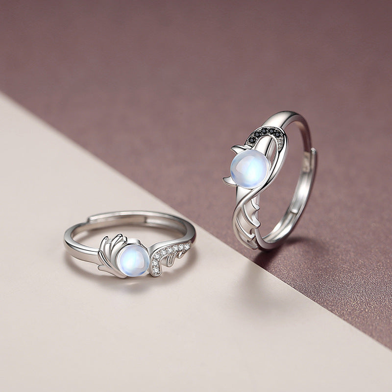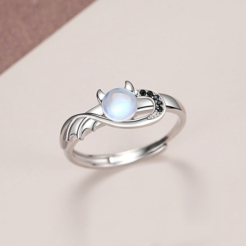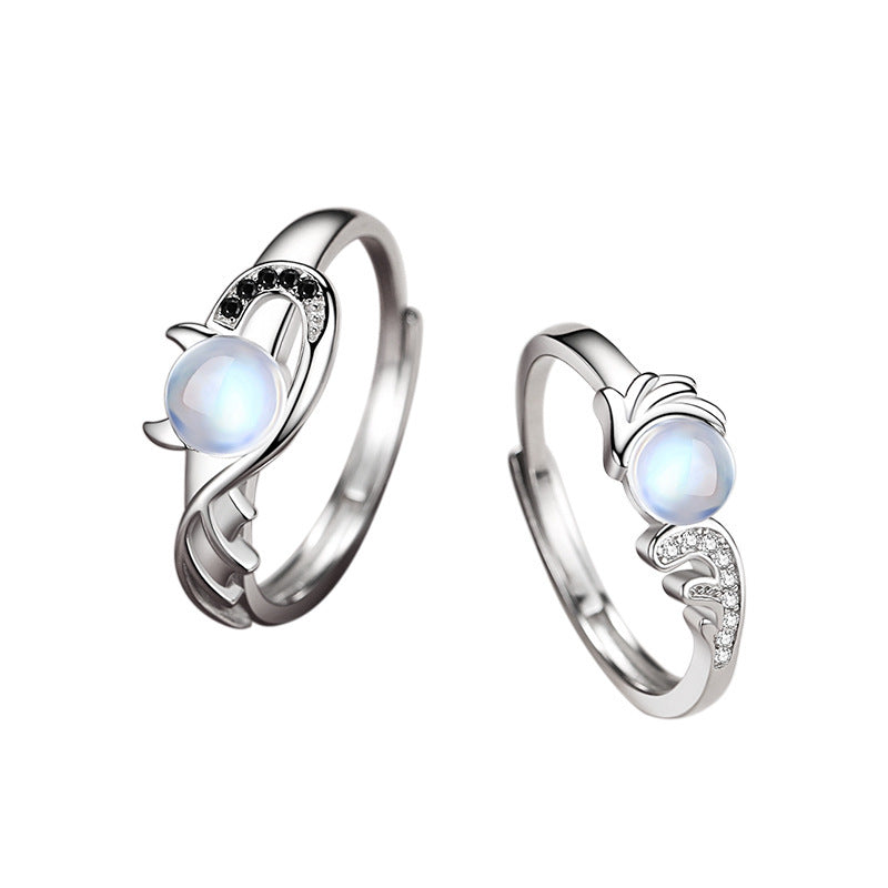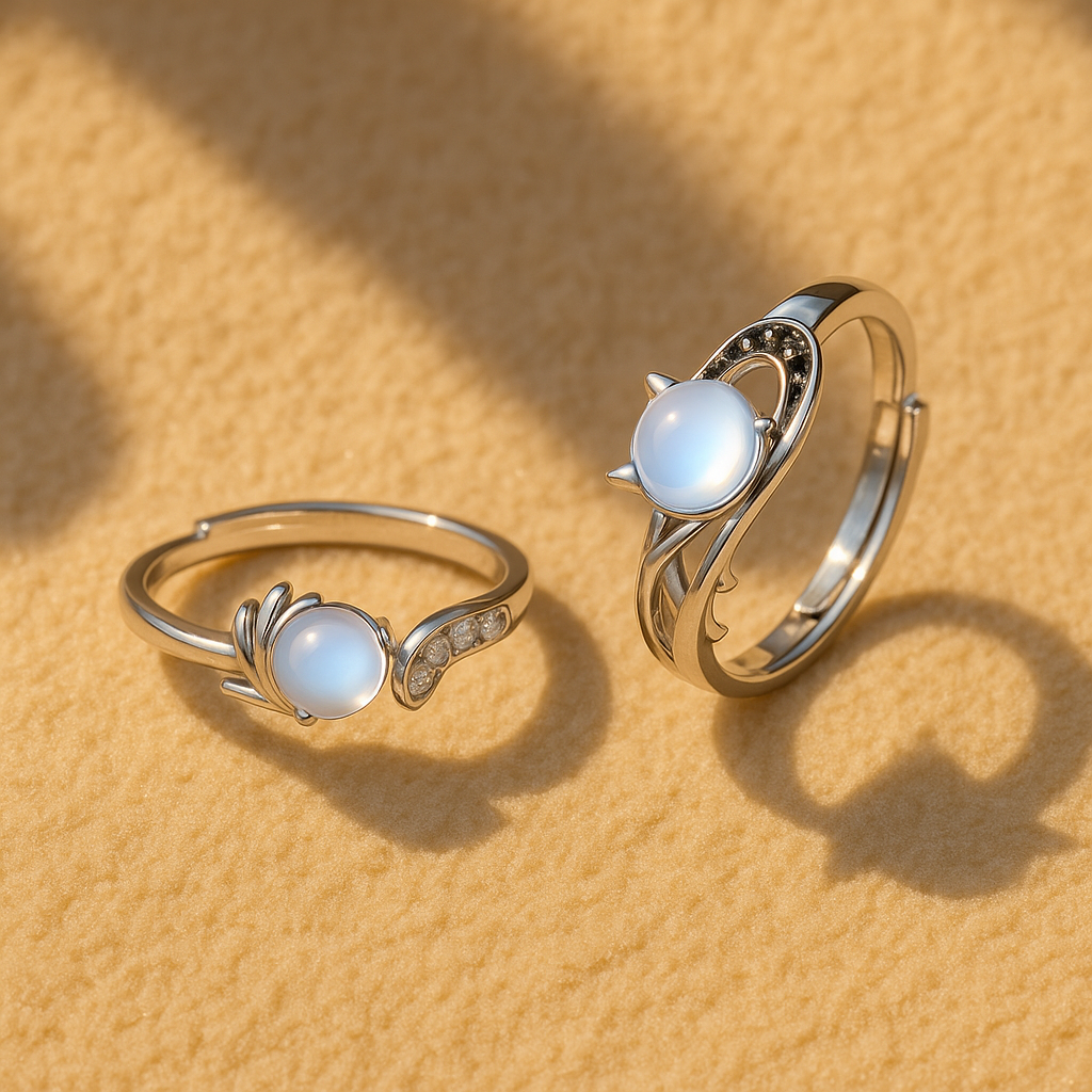 Au cœur de chaque bague Ange et Démon, brille une pierre à l’aura envoûtante : la pierre reflétant la lune, symbole de pureté et de dualité, elle capture la lumière comme un fragment de ciel étoilé et la restitue en un éclat doux et hypnotique.