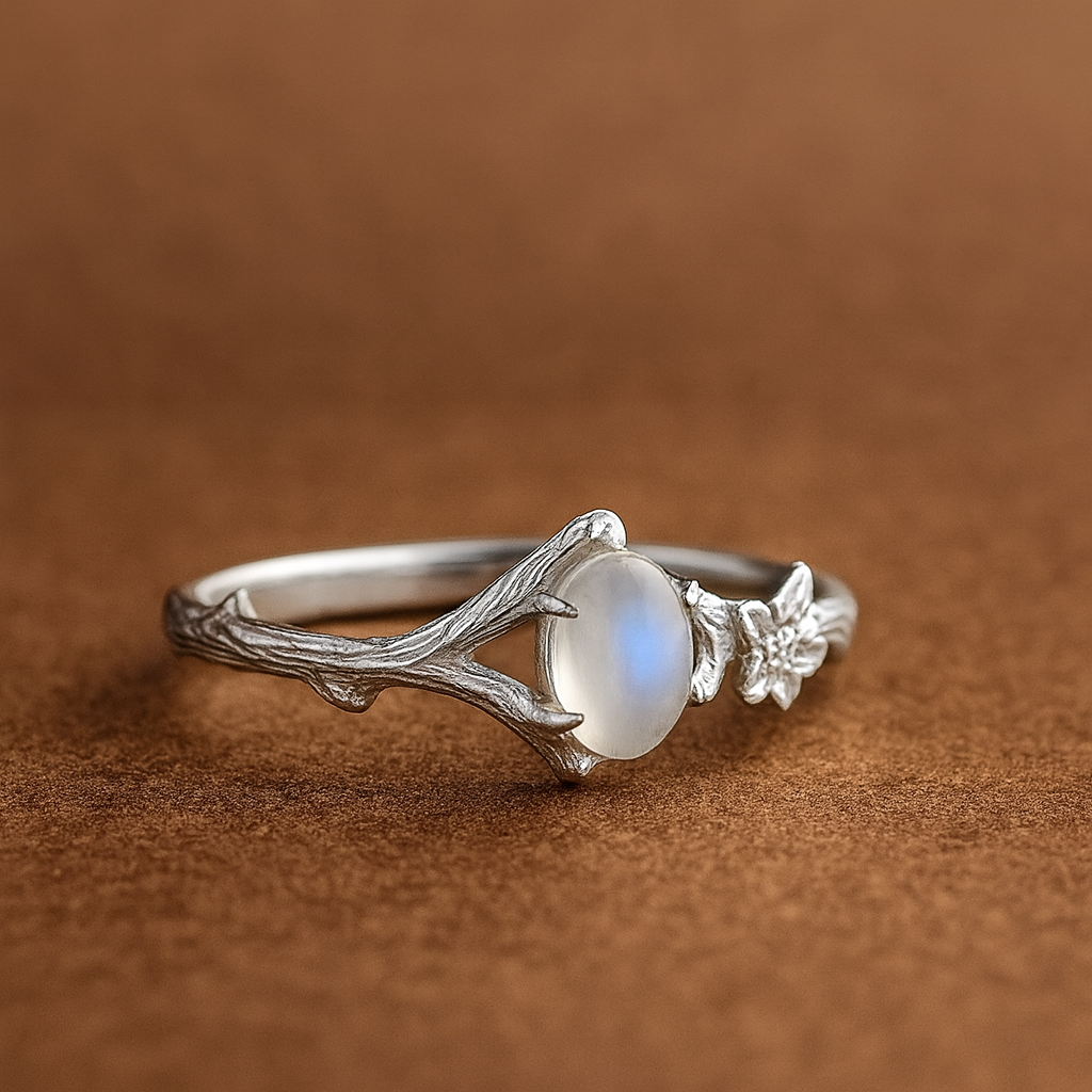 Bague "Arbre de Lune" en Pierre de Lune Naturelle