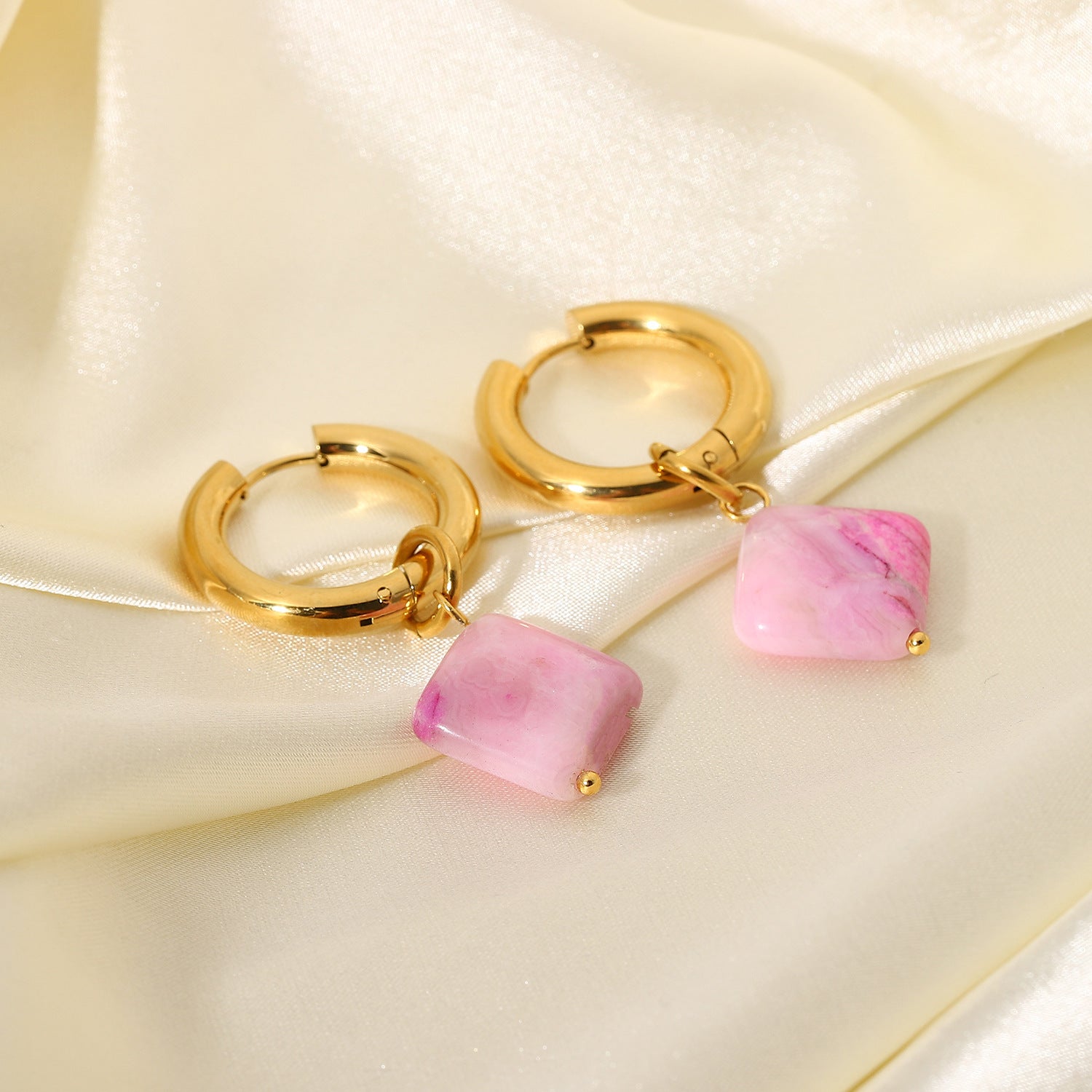 Leur design associe la brillance moderne de l’acier inoxydable doré à la douceur d’une pierre naturelle rose, soigneusement polie pour révéler ses nuances uniques.