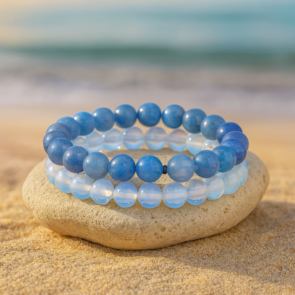 Bracelet DUO "Intuition et Créativité" en Aventurine Bleue et Opale