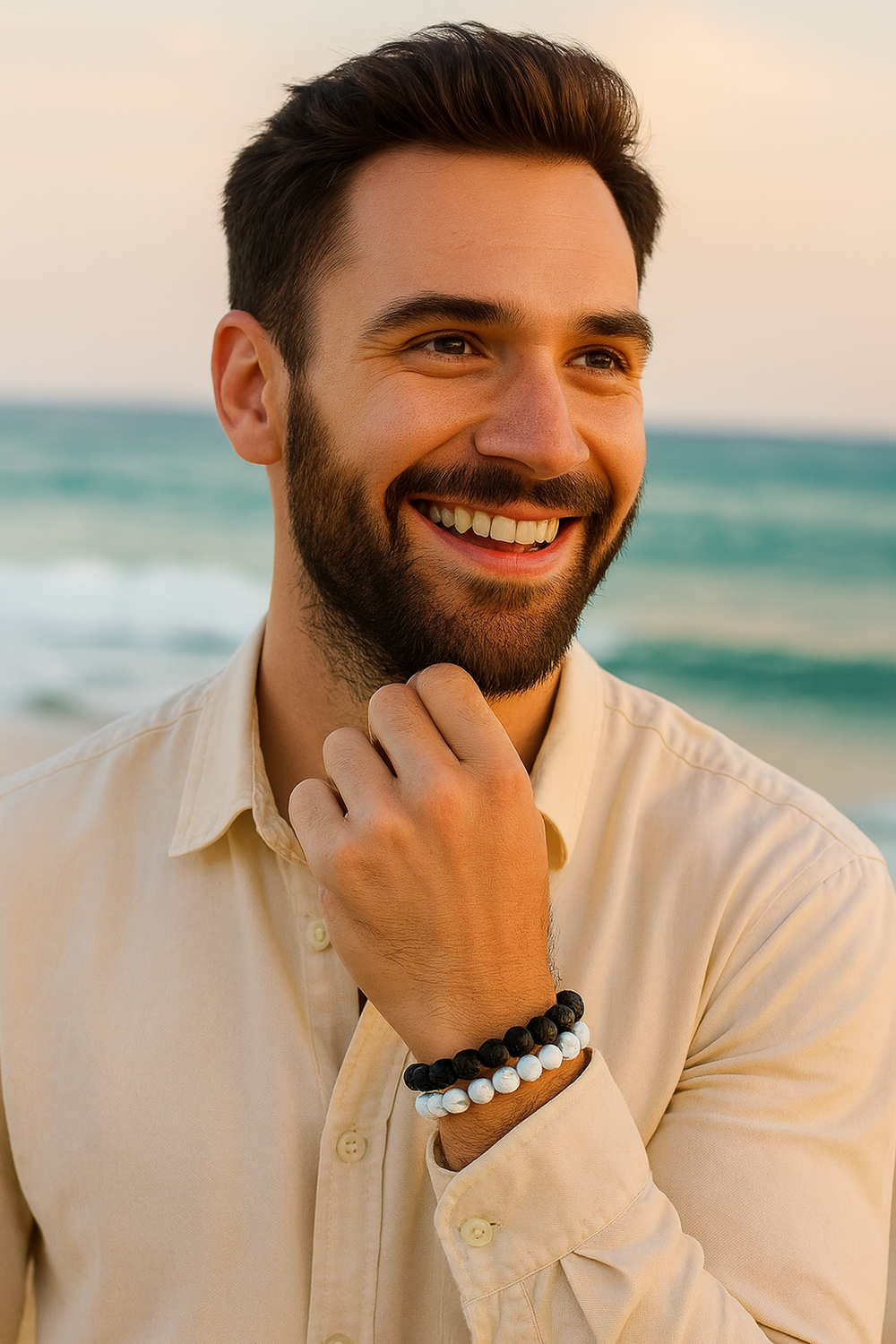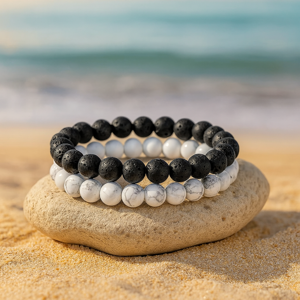 Bracelet DUO "Force et Sérénité" en Pierre de Lave et Howlite Blanche