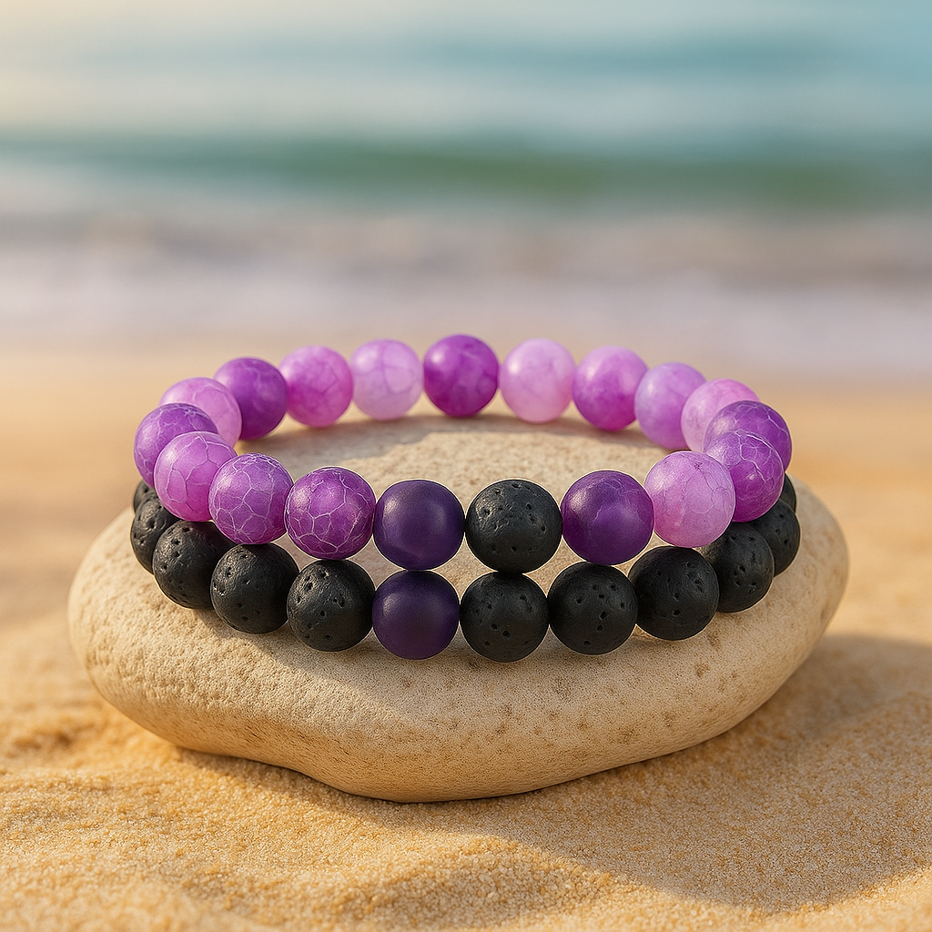 Bracelet DUO "Harmonie & Vitalité" en Agate Zébrée Rose et Jaspe Rouge