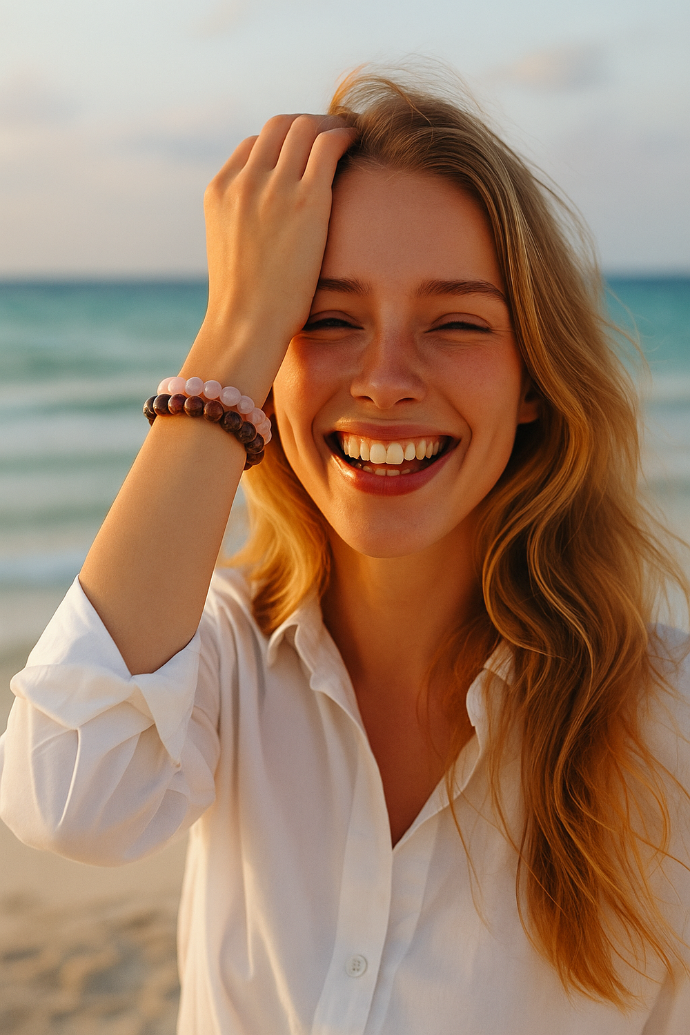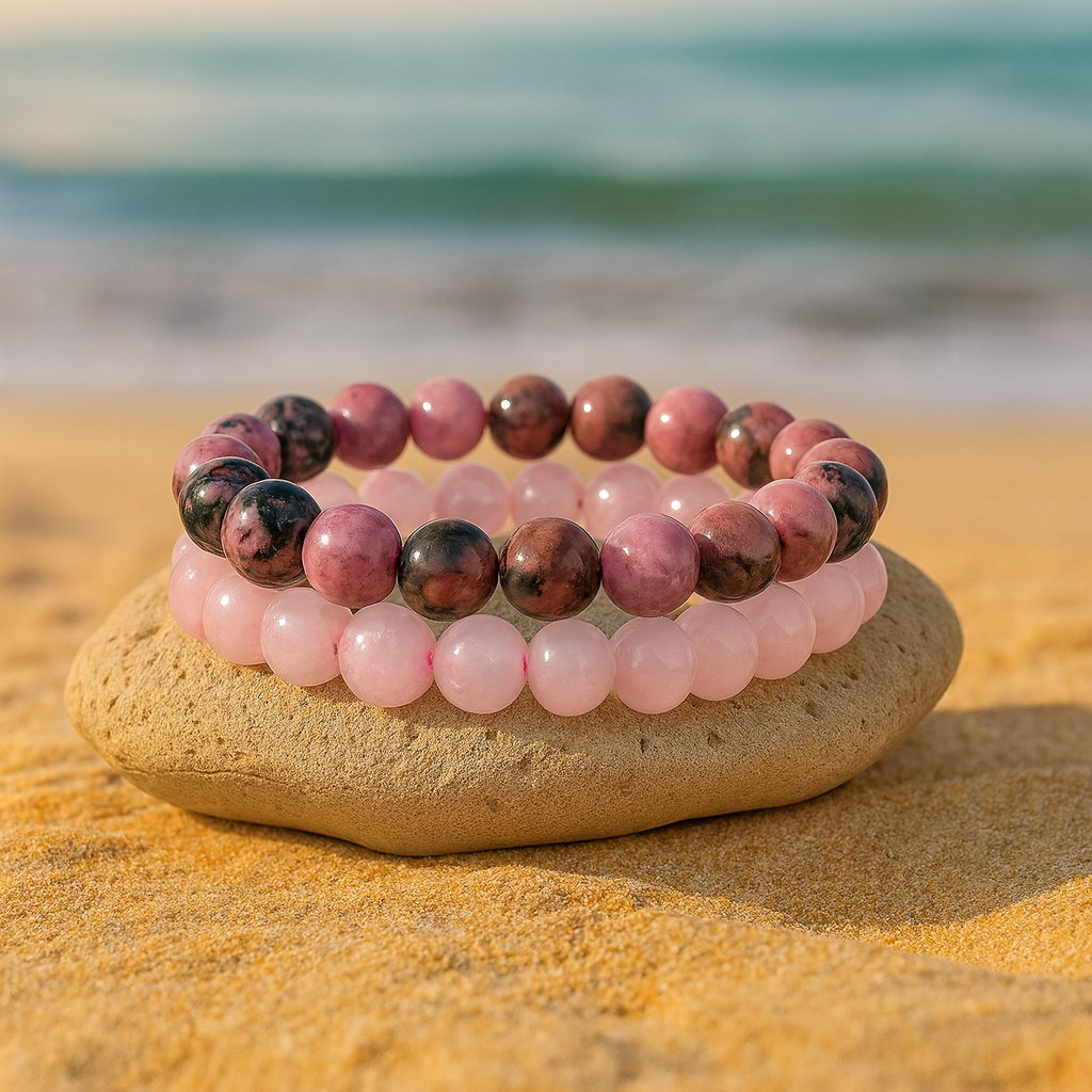 Bracelet "Amour de Soi et Apaisement émotionnelle" en Rhodonite et Quartz Rose