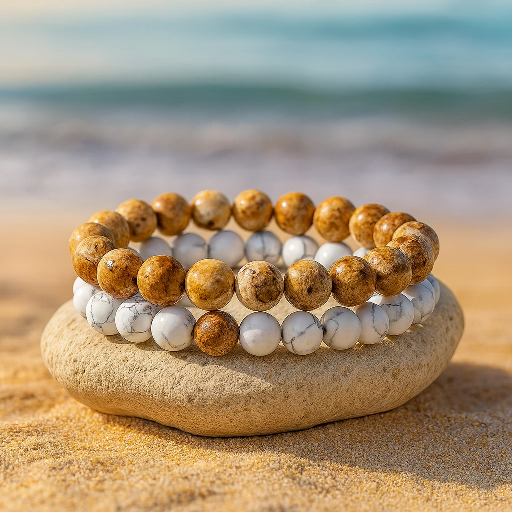 bracelet DUO "Stabilité et Ancrage" en Jaspe Paysage