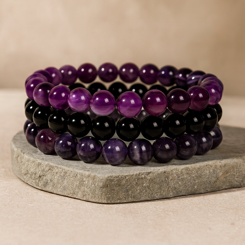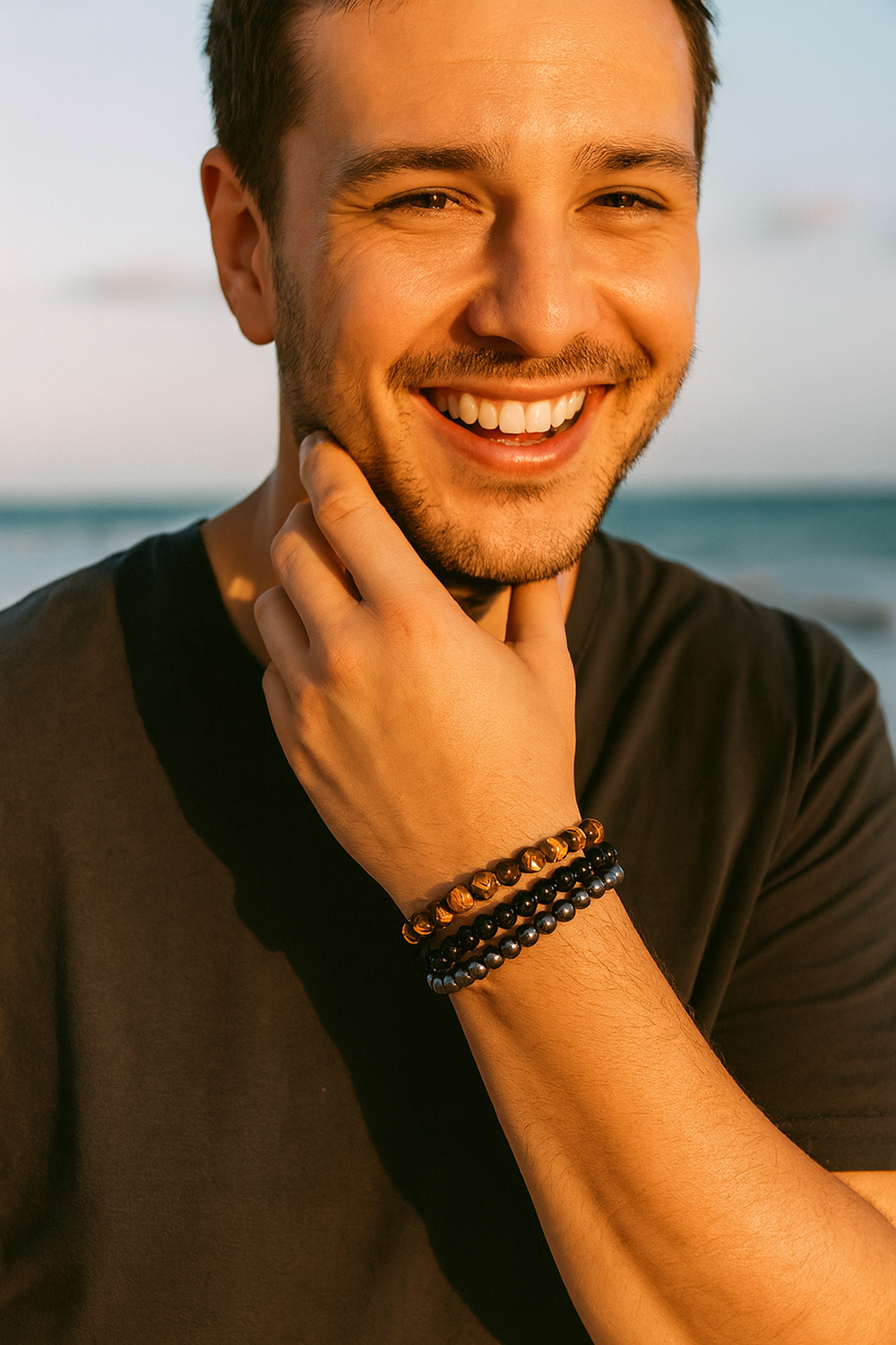 Bracelet DUO "Force et Protection" en Œil de Tigre et Onyx Noir