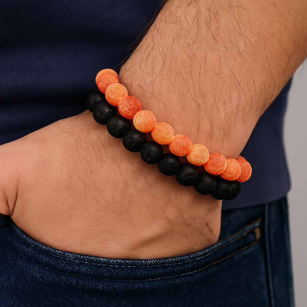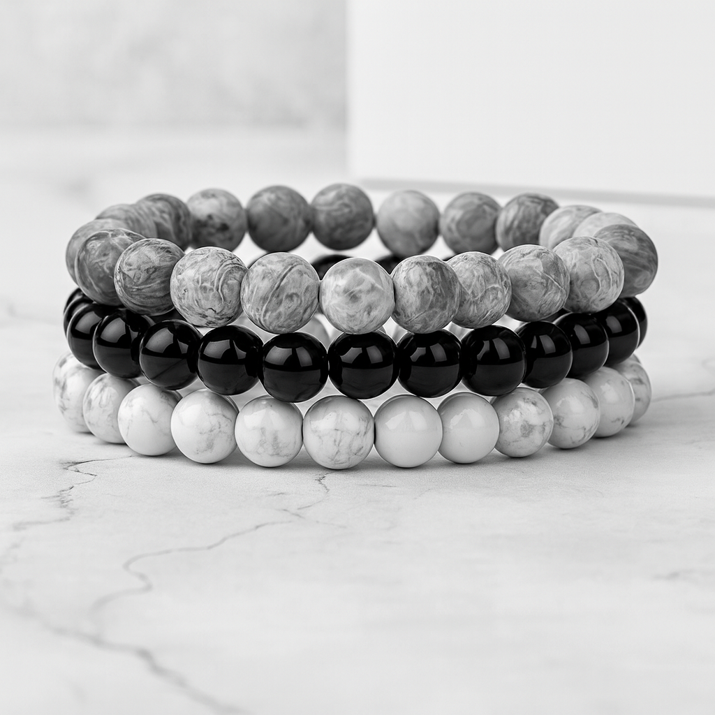 Bracelet DUO "Phoenix" en Pierre Naturelles - Ambre & Blanc