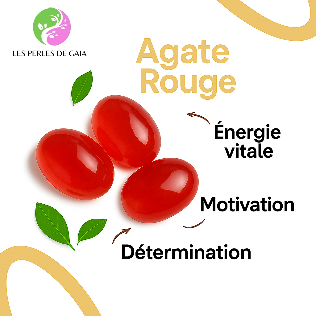 Vitalité et confiance en soi (Agate Rouge) : Cette pierre stimule l’énergie vitale, favorise la motivation et aide à surmonter les défis avec détermination.