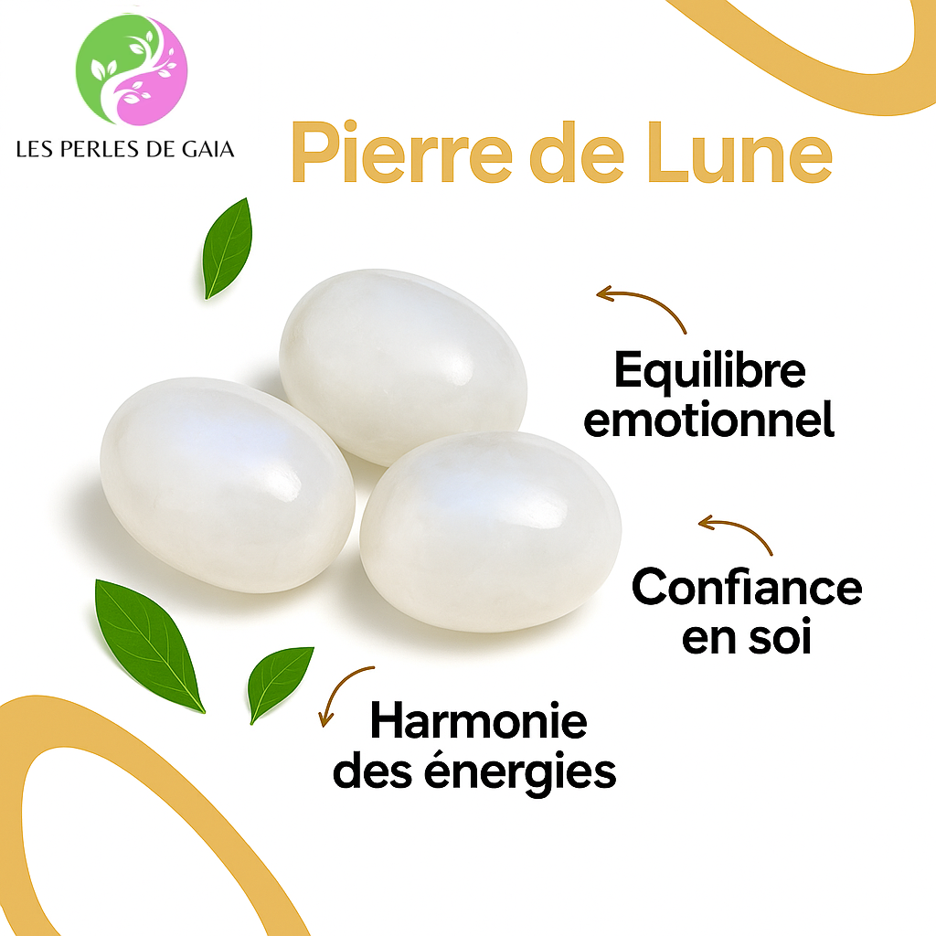 L’Agate est particulièrement bénéfique pour renforcer la confiance en soi. Elle vous aide à libérer vos doutes et vos craintes, tout en stimulant une énergie positive et joyeuse. La Pierre de Lune, associée à la féminité et à l’ouverture du cœur, permet de renforcer l’amour-propre et l’acceptation de soi, vous permettant de rayonner avec assurance.