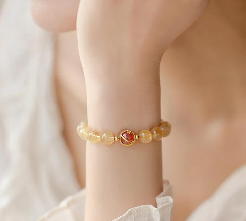 Bracelet "Prospérité" en Citrine et Quartz Doré