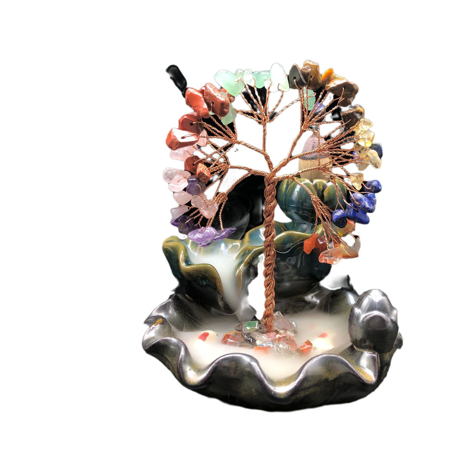 Chaque détail de cet encensoir est pensé pour éveiller la paix intérieure : le socle en céramique zen accueille un arbre aux sept cristaux colorés, représentant l’équilibre des chakras et la circulation harmonieuse de l’énergie vitale.