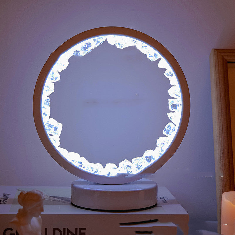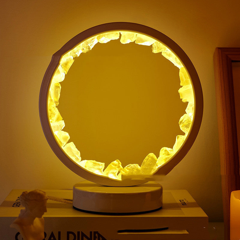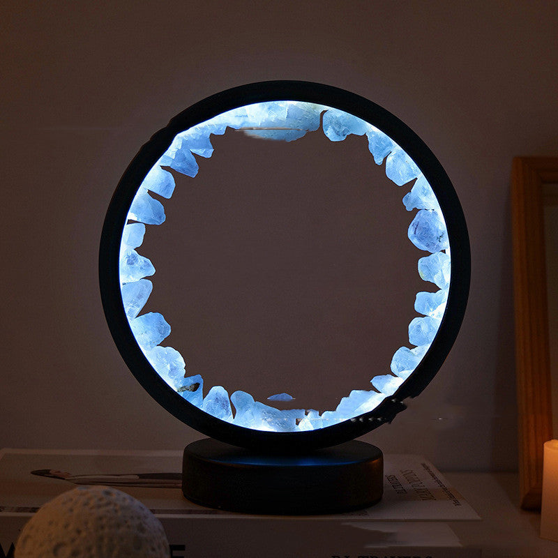 La lumière douce (chaude ou froide selon le modèle) révèle la beauté cristalline de la pierre, tout en diffusant une atmosphère apaisante idéale pour la méditation, la détente ou le sommeil.
