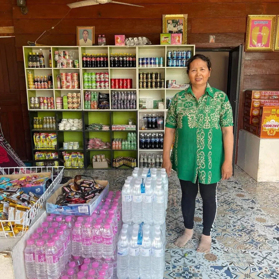 Chantha a acheté une épicerie. Elle l'a approvisionnée en produits alimentaires et en quelques produits d'épicerie. Depuis 72 mois, elle maintient son commerce ouvert. Cela lui a permis d'améliorer ses revenus et de trouver un emploi. Elle maintient un magasin bien organisé et aide ses clients autant que possible.